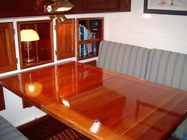 Bordé classique acajou 29 mm, membrures acacia Quille , étrave, étambot iroko Membrures ployées acacia Mat, bôme et corne en pin d 'oregon Paroi en iroko Roof en acajou cipo Clouaison en cuivre rouge rivé sur rondelles Lest en fonte 2.3 t Arriere norvegienPont et superstructures / à propos :