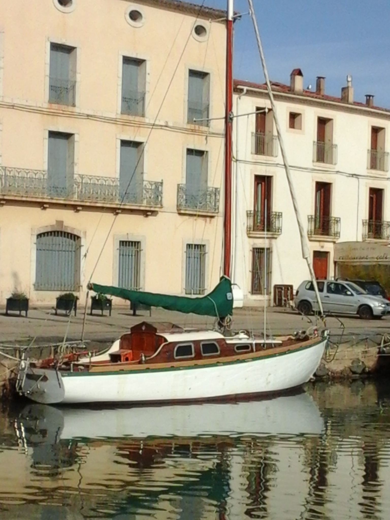 A L'ORIGINE: - Sloop avec foc en tête et un étage de flèches. - Mât et bôme: spruce verni. - Gréement courant: tergal. - Gréement dormant: double étais avant/haubans/galhaubans/pataras/ridoirs: inox. - Poulies: céleron.Voilure / à propos :