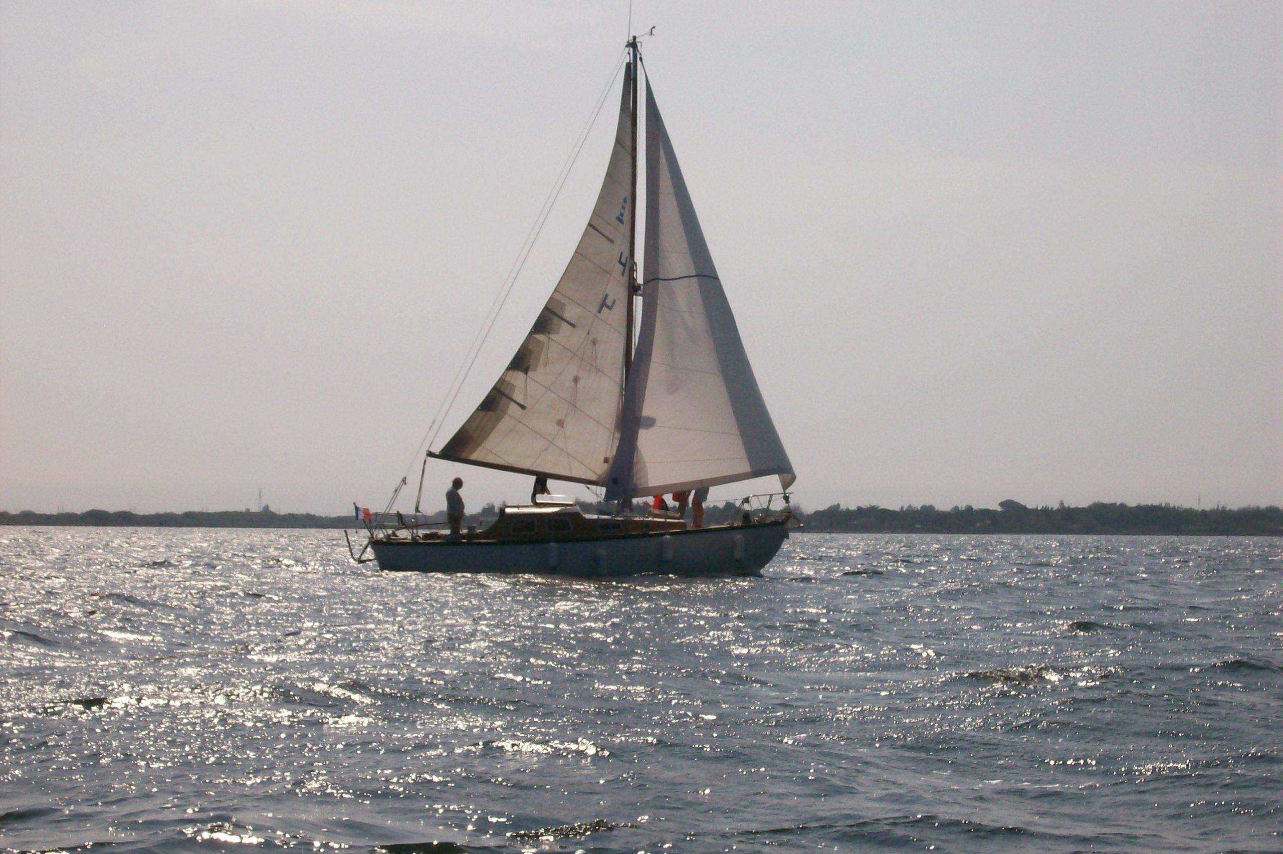 A L'ORIGINE: - L'ensemble était en tergal ( Tasker ) blanc. - Grand Voile: 19,15m2 ( 3 bandes de ris ). - Foc n° 1: 16,27m2. - Génois: 20,15m2. - Tourmentin: 4,65m2.Emménagements / à propos :