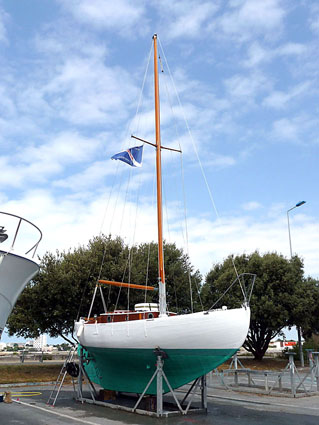 - construction classique - bordés en pitchpin sur membrures en accacia - quille en chêne - lest fonte (env 3t.) - étrave arrondie, arrière norvégienPont et superstructures / à propos :