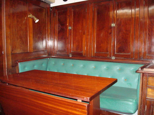 Ligne caractéristique avec son étrave droite, son brion se situe au-dessus de la ligne de flottaison qui témoigne d’une époque révolue. Dog House marquant la personnalité Yachting.